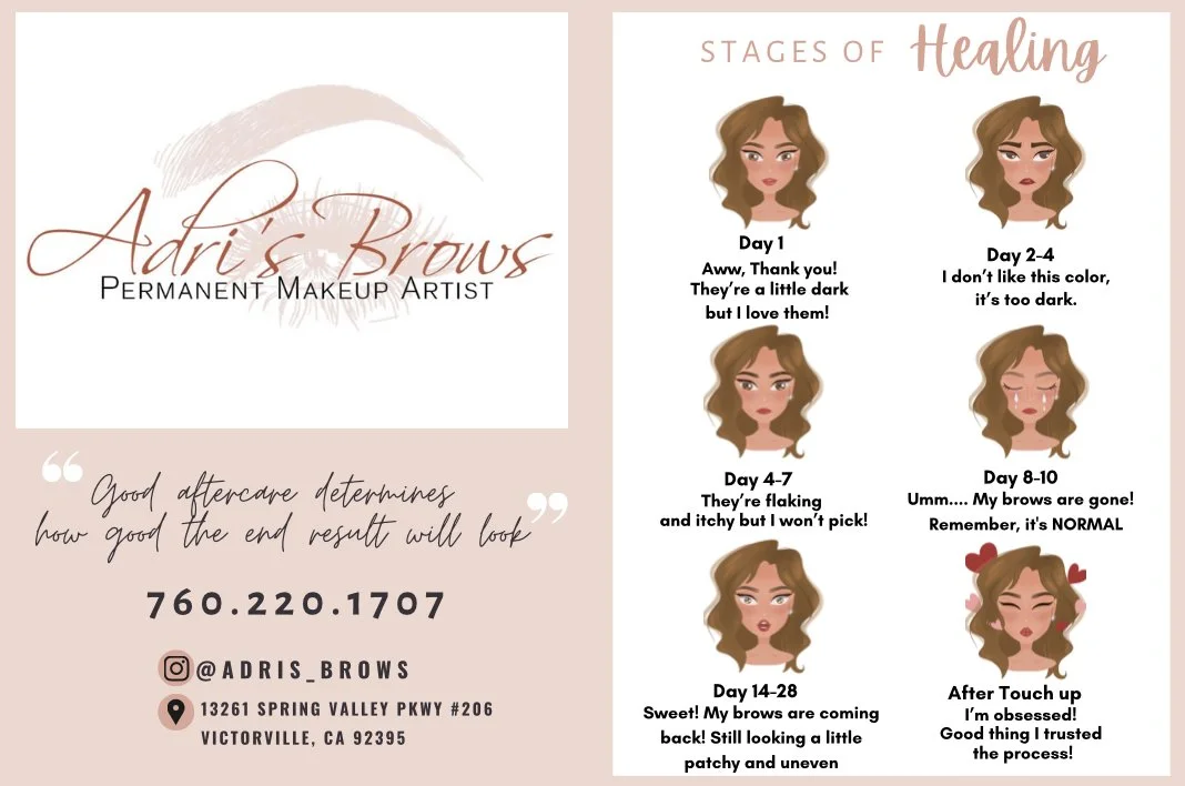At Adri's Brows, we prioritize your satisfaction and the longevity of your permanent makeup. We understand that the healing process plays a vital role in achieving the best possible results. That is why we provide all of our lovely clients with an aftercare bag after each first session, containing everything necessary to properly care for your eyebrows during the healing stages.